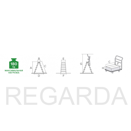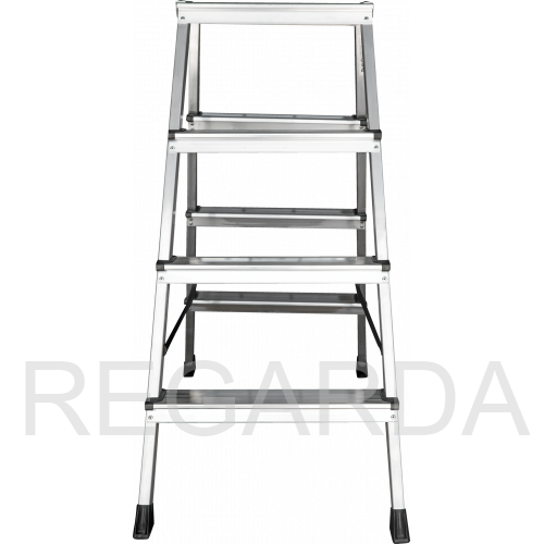 - Алюминиевая складная площадка 350×260 мм из 2 ступеней. Увеличенный радиус работы.