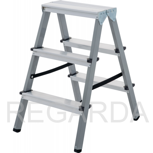 - Алюминиевая складная площадка 350×160 мм из 2 ступеней. Удобно ставить инвентарь.