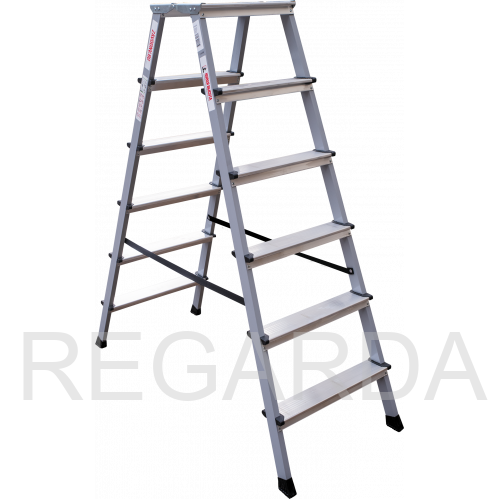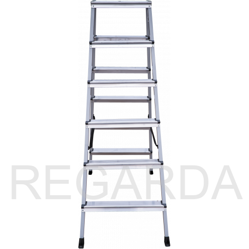 Стремянка двухсторонняя стальная с алюминиевыми ступенями и площадкой 350×260 мм NV2140206