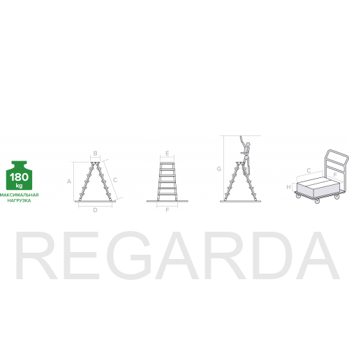 • Алюминиевая складная площадка 350×260 мм из 2 ступеней. Увеличенный радиус работы.