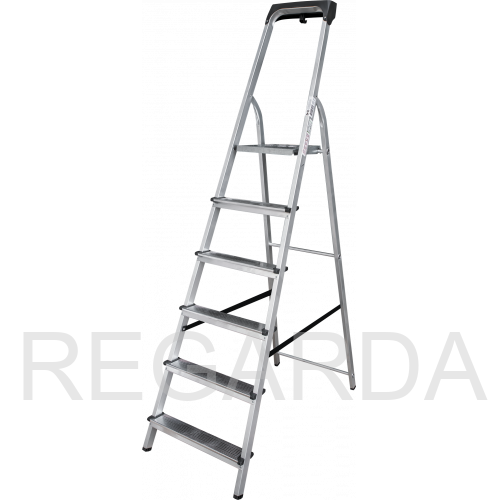Лёгкая и прочная стремянка для ремонта и уборки. Инвентарь и инструменты под рукой при работе.
