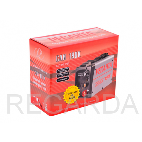 Модель САИ 190К Ресанта имеет удобную панель регулировки, длинные кабели и всё, что необходимо для надёжного удерживания и использования аппарата (ручка для переноса, плечевой ремень). Когда сварка работает, все параметры высвечиваются на цифровом дисплее.