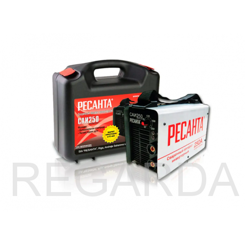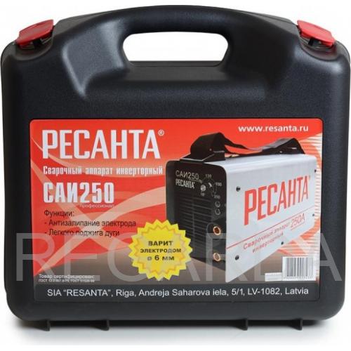 Инверторный сварочный аппарат Ресанта САИ 250 в кейсе – источник питания постоянного тока, разработанный для ручной дуговой сварки, методом ММА, с использованием плавящегося электрода с любым видом твёрдого покрытия.
