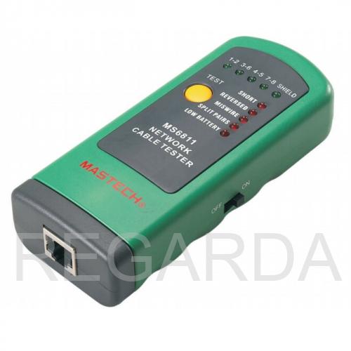 Кабельный тестер MASTECH MS6811 – очень компактный удобный прибор для проверки коаксиальных кабелей, неэкранированных кабелей, экранированных кабелей. Длина проверяемого кабеля может составлять от 0.4 до 200 метров. Осуществляет проверку на обрывы, короткие замыкания, перекрестные, перепутанные и расщепленные пары. Также доступна проверка целостности экранировки кабеля, режим DEBUG, позволяющий быстро определить тип неисправности для каждой пары кабеля.