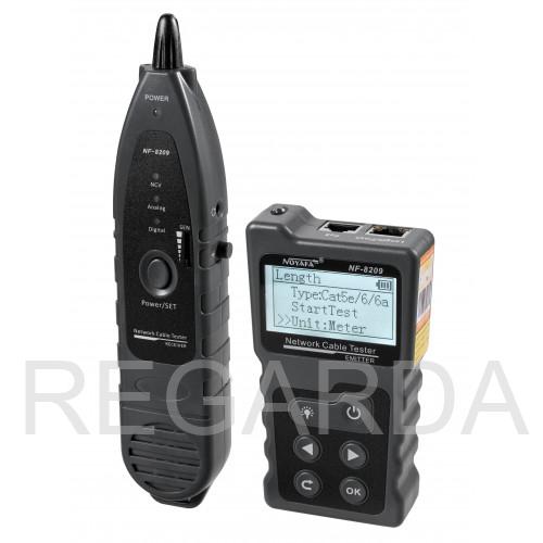 NF-8209 - это новое поколение тестеров имеющих цифровую и аналоговую трассировку кабельных линий. Он имеет три режима отслеживания кабеля, цифровой режим, аналоговый режим и режим PoE. Кроме того, он включает в себя измеритель длины кабеля, тестирование неисправностей LAN сетей, тестирование PoE, визуальный легкий поиск нужного кабеля на коммутаторе (Flash Port) и функцию NCV (бесконтактный датчик напряжения 220В).