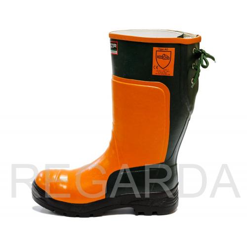 CENTURY® Forester 3000 Tigar обладают высокими защитными свойствами. Сапоги водонепроницаемые, масло-бензостойкие, устойчивые к многократным изгибам Изделие защищает от ударов в носочной части. Подошва предотвращает скольжение ноги. Удобная колодка обеспечивает комфорт в носке. Высота сапог составляет 40 см. Шнуровка сзади сверху необходима для регулировки голенища. Могут использоваться в среде с риском прокола подошвы, на скользких участках, в условиях повышенной влажности, при работе с маслами и смазками, в условиях общепроизводственных загрязнений. Средство индивидуальной защиты может использоваться при риске получения травм ног вследствие удара, ущемления или укола, разрезания сапога цепью моторной пилы при рубке леса или при выполнении работ в деревоперерабатывающей промышленности.