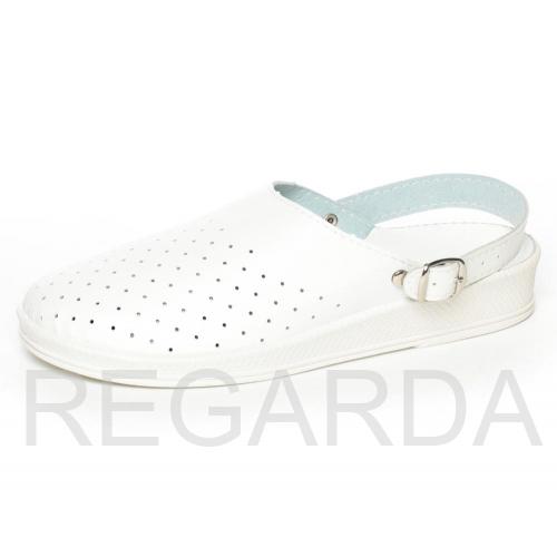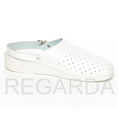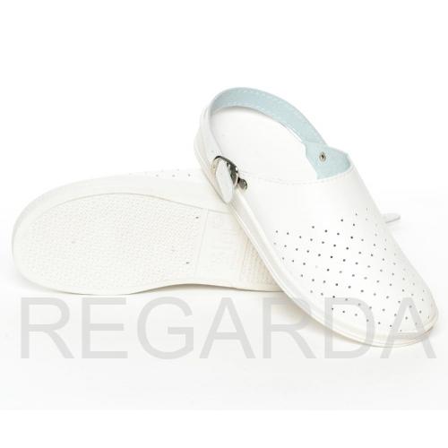 Перфорированная кожа в мужских сабо создает дополнительную вентиляцию. Поворотный регулируемый ремешок может располагаться спереди и сзади, для фиксации пятки и декоративного элемента на изделии. Удобная модель предназначена для использования в сфере обслуживания, легкой промышленности, медицины.