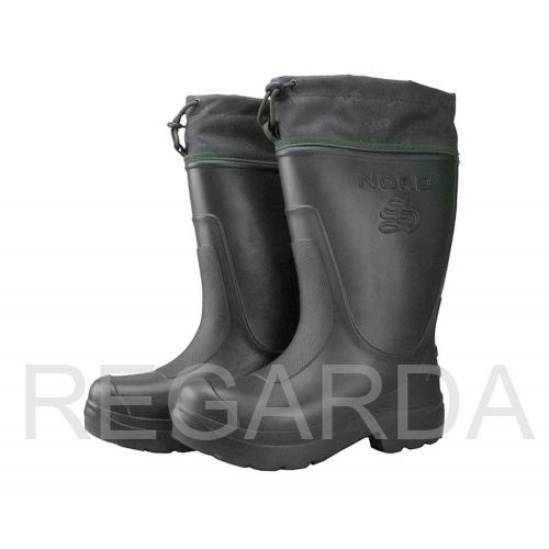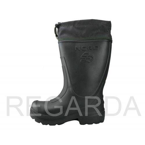 В сапогах ЭВА «NORD» расположен клапан-манжет, выполненный из водоотталкивающей ткани (Оксфорд) с возможностью регулировки по ноге. Внутри сапог 4-слойный сменный вкладыш (чулок), льняное полотно, искусственный мех. Фольгированная сетка сохраняет тепло. Сапоги ЭВА «NORD» рассчитаны на эксплуатацию при низких температурах (до -45С).