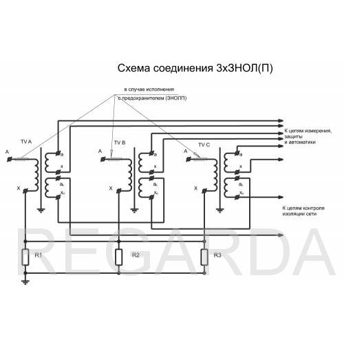 | Напряжение на выводах разомкнутого треугольника дополнительных вторичных обмоток При симметричном режиме работы сети, В, не более | 3 В |