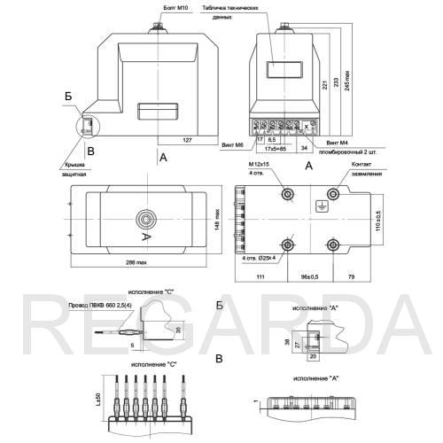 | Номинальная мощность дополнительной вторичной обмотки | 100, 200 В∙А |