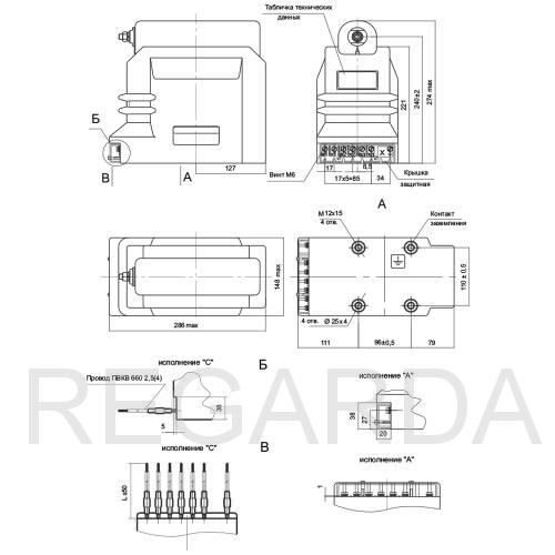 | Номинальное напряжение дополнительной вторичной обмотки | 100/3, 100 В |