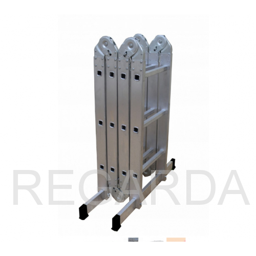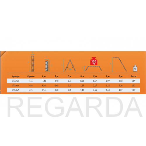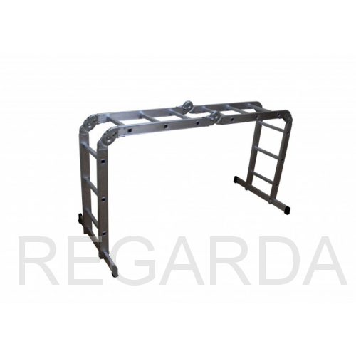 Среди особенностей модели можно выделить ступени с рифлением для безопасного подъема и спуска, стойки и ступени из прессованного алюминиевого профиля. Стойки с дополнительным усилием в наиболее нагруженных местах для повышения жесткости. Многократная развальцовка в соединении ступеней со стойками обеспечивает высокую прочность и долговечность. Шарнирные замки регулируются одной рукой. Широкие поперечные траверсы обеспечивают высокую устойчивость при работе во всех положениях. Башмаки траверсы препятствуют скольжению и надежно закреплены с помощью заклепок. Максимальная нагрузка в положении помост 100 кг.