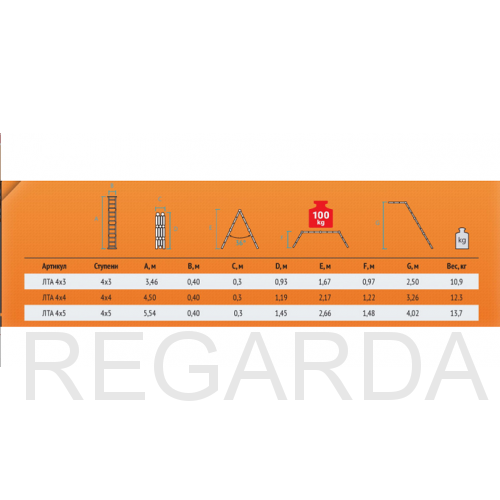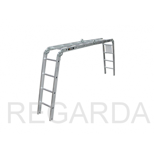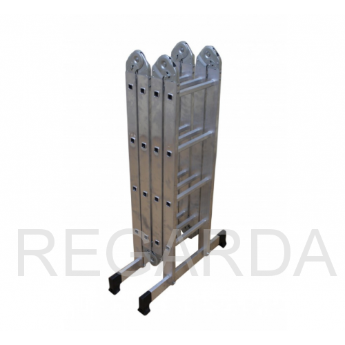 Среди особенностей модели можно выделить ступени с рифлением для безопасного подъема и спуска, стойки и ступени из прессованного алюминиевого профиля. Стойки с дополнительным усилием в наиболее нагруженных местах для повышения жесткости. Многократная развальцовка в соединении ступеней со стойками обеспечивает высокую прочность и долговечность. Шарнирные замки регулируются одной рукой. Широкие поперечные траверсы обеспечивают высокую устойчивость при работе во всех положениях. Башмаки траверсы препятствуют скольжению и надежно закреплены с помощью заклепок. Максимальная нагрузка в положении помост 100 кг.