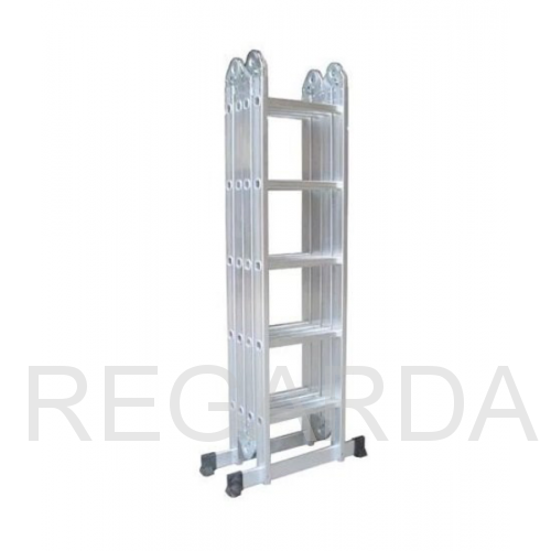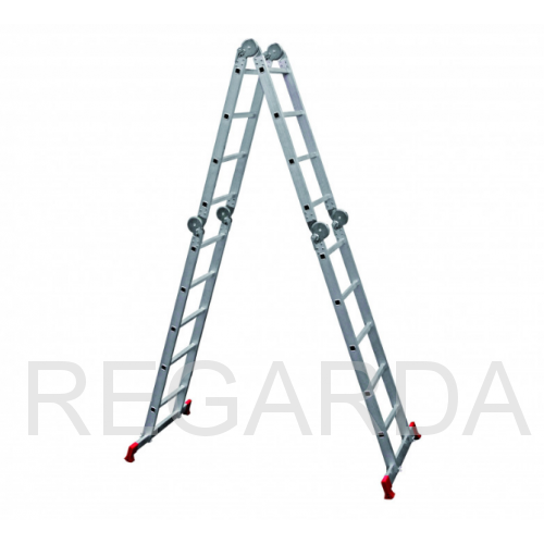 Среди особенностей модели можно выделить ступени с рифлением для безопасного подъема и спуска, стойки и ступени из прессованного алюминиевого профиля. Стойки с дополнительным усилием в наиболее нагруженных местах для повышения жесткости. Многократная развальцовка в соединении ступеней со стойками обеспечивает высокую прочность и долговечность. Шарнирные замки регулируются одной рукой. Широкие поперечные траверсы обеспечивают высокую устойчивость при работе во всех положениях. Башмаки траверсы препятствуют скольжению и надежно закреплены с помощью заклепок. Максимальная нагрузка в положении помост 100 кг.