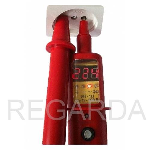 Указатель напряжения цифровой УН – 1Ц-12-999В двухполюсный светозвуковой цифровой индикацией напряжения предназначен для проверки наличия или отсутствия напряжения в электроустановках переменного тока частотой 50 Гц и постоянного тока напряжением 12 ¸ 999 В, а также для проверки целостности электрических цепей сопротивлением не более 50кОм, в условиях эксплуатации У1 по ГОСТ 15150.