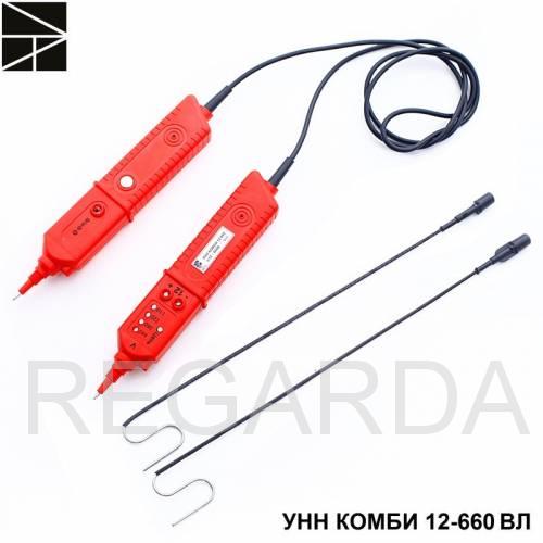 Указатель напряжения УНН КОМБИ 12-660 ВЛ предназначен для контроля наличия напряжения как на воздушных линиях, так и в электроустановках переменного и постоянного тока напряжением 12-660В частотой 50Гц. Указатель обеспечивает ступенчатую импульсную светозвуковую индикацию напряжения постоянного и переменного тока 12,110,220,380,660В, позволяет определить полярность постоянного и фазу переменного напряжений, целостность электрических цепей с внешним сопротивлением от 0 до 100 кОм ( светозвуковая прозвонка).