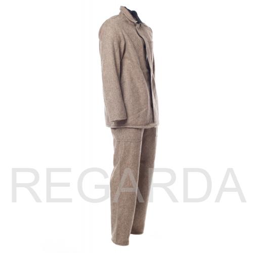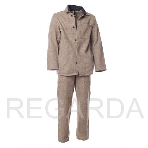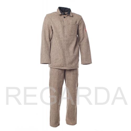 Костюм КЩС суконный изготовлен в соответствии с ГОСТ и включает 2 предмета: куртка, брюки. Изделие закрывается на супатную застежку на пуговицы. На модели расположены верхний левый накладной карман, нижние карманы в рельефе, накладные карманы с косым входом. Куртка оснащена втачным воротником. Гульфик на брюках застегивается на пуговицы. На задних половинках брюк присутствует вытачки. Пояс изделия-цельнокройный, держится на шлевках.