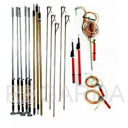 Комплект штанг универсальных для заземления ВЛ 0,4-10 кВ КШЗУ-0,4-10Н предназначен для заземления проводов отключенных ВЛ напряжением 0,4-10 кВ непосредственно с поверхности земли, а с указателями напряжения для проверки наличия или отсутсвия напряжения на воздушных линиях, при температуре от -45°С до +40°С. Относительная влажность воздуха не выше 80% при 25°С.