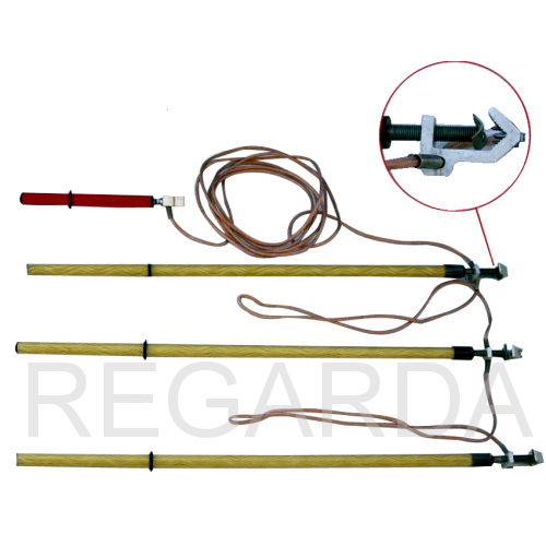 Заземление переносное ПК 0.4-10Н для наложения на изолированные провода линий напряжением до 10кВ промышленной частоты для их раздельного заземления. Предназначено для защиты работающих на отключенных участках электрооборудования или выполнения коммутационных работ. Особенностью конструкции фазных зажимов является наличие на них специальных шиповых площадок, которые при наложении заземления на линии прокалывают изолирующую оболочку проводов. Этим обеспечивается контакт фазного зажима с токоведущей частью и, соответственно, функцию защитного заземления.