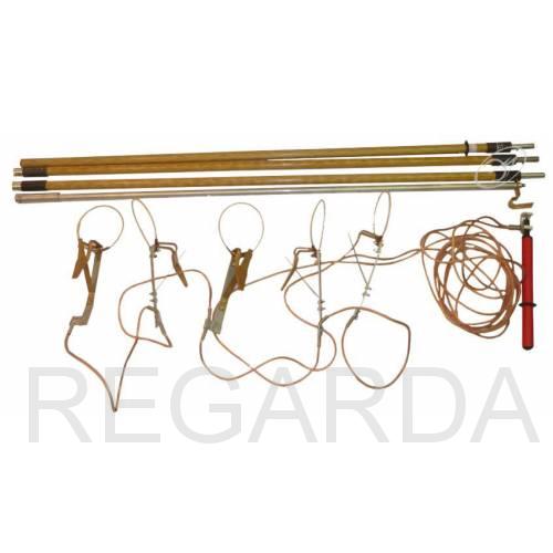Предназначено для защиты работающих на отключенных участках оборудования ВЛ до 1кВ от поражения электрическим током, на случай ошибочной подачи напряжения на этот участок или появления на нем наведенного напряжения и обеспечивает возможность наложения и снятия заземления на провода воздушных линий непосредственно с поверхности земли. Количество фазных зажимов 5.