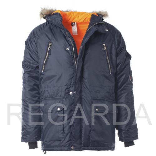 Куртка "Аляска" представляет собой удлиненную модель. Она оснащена ветрозащитной планкой на кнопках, которая обеспечивает дополнительную защиту от ветра.