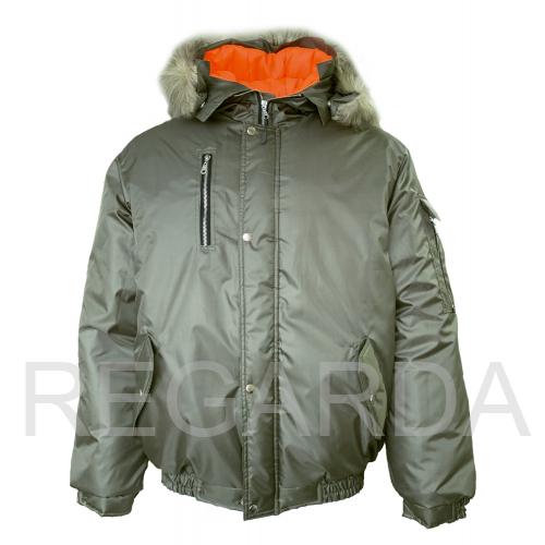 Куртка "Аляска" изготовлена в соответствии с ГОСТ. Модель имеет укороченный фасон на поясе, дополнена эластичной резинкой для комфортной посадки. Ветрозащитная планка на кнопках обеспечивает дополнительную защиту от ветра. Капюшон пришит к куртке и оснащен съемной меховой опушкой, что позволяет варьировать его использование в зависимости от погодных условий и предпочтений.