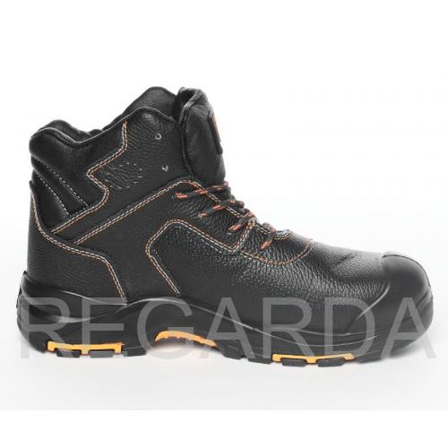 Ботинки изготовлены методом литья к заготовке верха обуви промежуточного слоя подошвы из полиуретана с ходовым слоем из резины на основе нитрильного каучука. Данная модель обеспечивает защиту от нефти, нефтепродуктов, механических воздействий, растворов кислот и щелочей концентрации до 30%, кратковременного (60 с) контакта с поверхностями, нагретыми до температуры 300°С, общих производственных загрязнений, а также для защиты от термических рисков электродуги. Нитки выполнены из негорючих материалов. Верхняя часть обуви выполнена из термоустойчивой и водоотталкивающей кожи (юфти) толщиной от 1,8 до 2,0 мм. Отсутствуют металлические детали (Metalfree). Подошва – двухслойная ПУ-Нитрил. Верхний слой из полиуретана обладает амортизирующими свойствами, гасит ударные нагрузки, а также придает обуви легкость, комфортность и повышенные теплозащитные свойства. Ходовой слой изготовлен из износостойкой, термостойкой (+300°С/ 60 с), морозостойкой резины на основе нитрильного каучука с улучшенным сопротивлением скольжению, стойкостью к деформациям, истиранию. Носочная часть имеет дополнительную защиту в виде полиуретановой накладки, предотвращающей механические повреждения обуви и препятствующей проникновению холода. Для защиты от ударов в носочной части стопы применяется композитный подносок (Мун 200), имеющий конфигурацию, препятствующую надавливанию верхнего края на стопу, и оборудованный прокладкой из полиуретана. Рисунок протектора подошвы обеспечивает хорошую сцепляемость с обледенелыми и замасленными поверхностями (глубина протектора составляет 5,0 мм). Обладает эффектом самоочищения. Утеплитель - мех натуральный (овчина) с высотой ворса 15 мм позволяет использовать обувь в III-IV климатических поясах. Объемная колодка специальной конструкции дает возможность работать целый день, не испытывая дискомфорта и усталости.