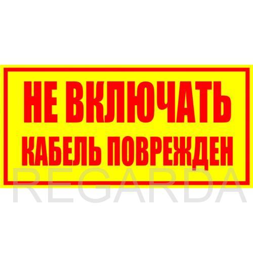 Знак (плакат) «Не включать! Кабель поврежден», S52 на пластике, размером 250х140 мм предупреждает о том, что включать установку или электроприбор не безопасно, так как имеются повреждения. Знаки и плакаты по электробезопасности изготовлены согласно требованиям Министерства энергетики России и являются предупреждающими знаками об опасности, связанной с электронапряжением