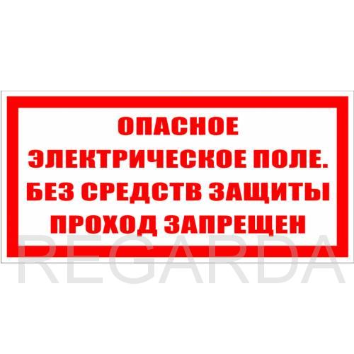 Плакат, знак безопасности "Опасное электрическое поле без средств защиты проход запрещен"