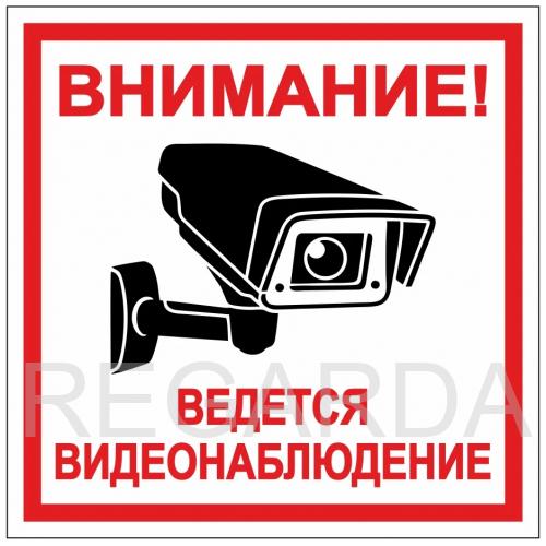 Табличка «ВНИМАНИЕ, ВЕДЁТСЯ ВИДЕОНАБЛЮДЕНИЕ» (200х200 мм; Пленка белая для сольвентной печати;