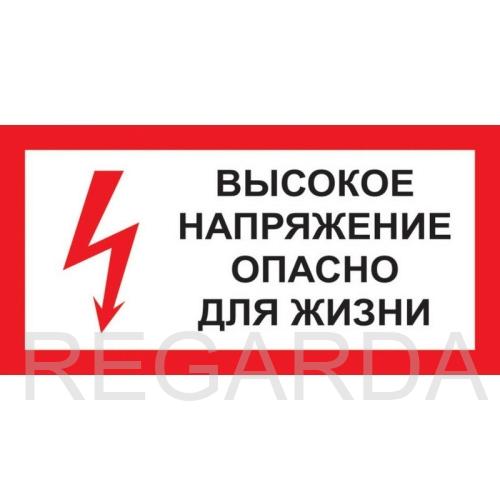 Табличка «Высокое напряжение. Опасно для жизни» (пластик,300х150 мм)