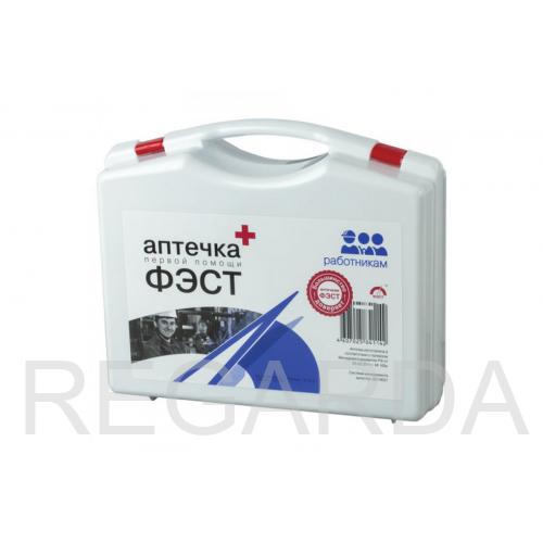 Аптечка первой медицинской помощи работникам ФЭСТ выпускается производителем в четырех исполнениях: в пластиковом чемоданчике, пластиковом и металлическом шкафчике, в сумке. Аптечка для оказания первой помощи работникам соответствует приказу Минздравсоцразвития РФ «Об утверждении требований к комплектации изделиями медицинского назначения аптечек для оказания первой помощи работникам» № 169н от 05.03.2011. Принята к оснащению подразделений организаций, предприятий и учреждений с 01 января 2012 года.