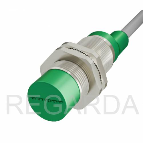 Индуктивный датчик ВБИ-М18-44В-2111-С в цилиндрическом корпусе из никелированной латуни Ø18 мм, в общепромышленном исполнении.