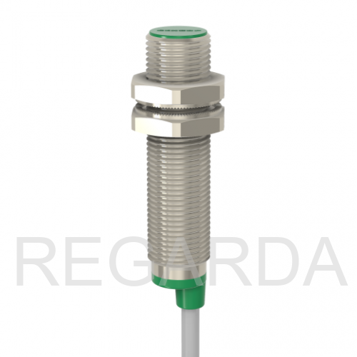 Индуктивный датчик ВБИ-М12-46У-1111-С в цилиндрическом корпусе из никелированной латуни Ø12 мм, в общепромышленном исполнении.