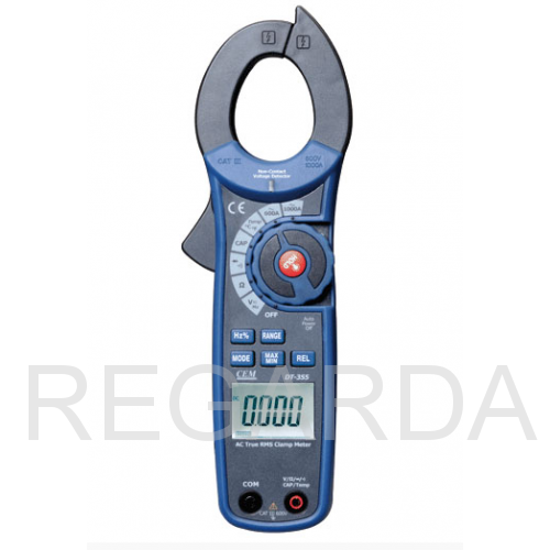 DT-355 – серия профессиональных токовых клещей для измерения переменного тока. Клещи измеряют истинное среднеквадратичное значение (True RMS) переменного тока и напряжения. Клещи обладают различными дополнительными функциями, такими как измерение сопротивления, емкости, диодный тест и т.п. Малые размеры клещей обеспечивают удобство использования в труднодоступных местах. Расположение и большие размеры дисплея с подсветкой дают возможность делать измерения одной рукой. Клещи имеют защищенный двойной пластиковый корпус.