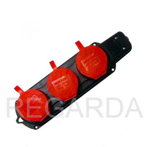 Розетка (колодка) трехместная с защитными крышками каучуковая 250 В 2P 16A обладает высокими электроизоляционными свойствами, износостойкостью, ударопрочностью, а также устойчивостью к температурным колебаниям. Основные сферы применения таких колодок – строительные и производственные площадки, машиностроение, электроснабжение бытовок и киосков, а также использование на даче или приусадебном участке, то есть во всех случаях, когда предъявляются повышенные требования к надежности и защищенности электрического соединения.